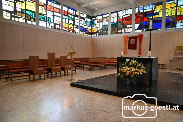 Innenraum - Altar der Kirche Stadlau - 23. Juni 2024